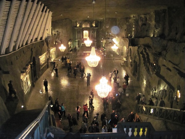 For me, the highlight of the tour was the St. Kinga’s Chapel, 101 metres underground… This, one of the largest chambers, is a fully functioning church, where services are held every Sunday morning at 8.00am… The sculptures hewn into the solid rock walls are worth a visit all on their own… Huge chandeliers hang from the rock ceiling, lighting up an area that can seat hundreds of people…