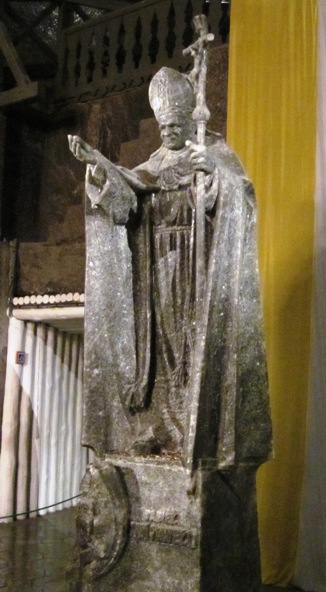 Every chamber in the mine was carved by the miners who worked here… They left large pillars of rock salt to support the walls of the ceiling of the chambers they mined, and then adorned the walls with statues and figurines… Many of the worlds famous who visited the mine have had statues raised in their honour… People like Johann von Goethe the German philosopher and writer, Chopin the composer, Copernicus, the Polish astronomer, and of course, Pope John Paul ll, a native of the Krakow region…