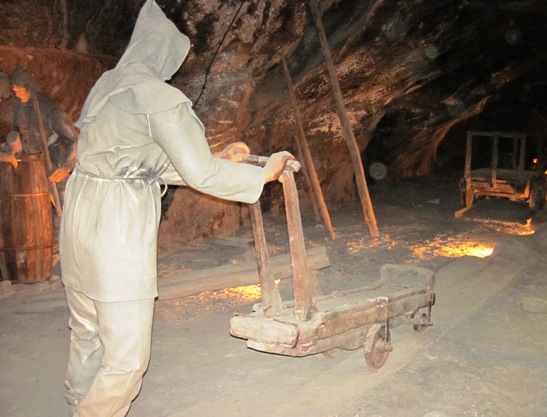 The mine has over 300 km of tunnels or galleries, over 3000 chambers of varying sizes, some tiny, other enormous enough to launch a hot air balloon in. (which was done to achieve one of those weird records which feature in the Guinness Book – the only place in the world where a hot air balloon was launched underground…!!) The mine comprises of nine levels, the deepest at over 327 metres underground. We only went as far as the 3rd level, which is at about 130 metres below the surface…