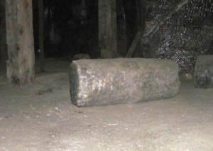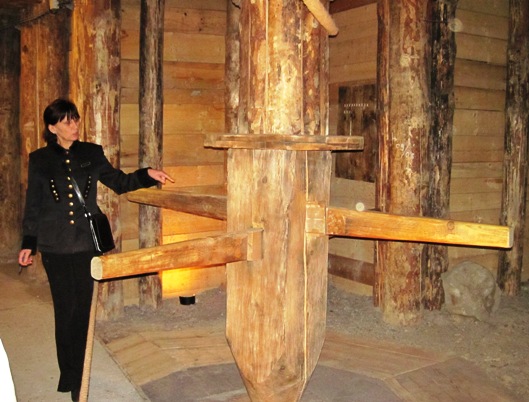 Untergestafsfuhrer "Lucy", shows us how the blocks of salt were winched up from the depth of the mine, using this ingenius system of pulleys...