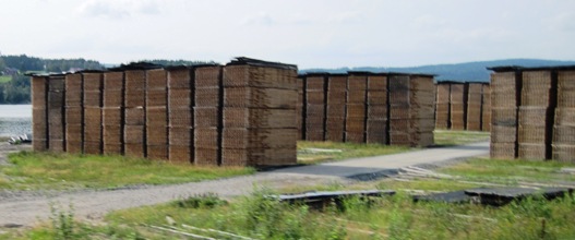 At Omskoldsvik, another smaller paper mill pumped clouds of vapour into the air… I also passed a sawmill, where lumber was stacked out under sheds to air-dry. Then I ran into a little problem with fuel… I should have filled up at Umea, but passed this town by, thinking that there was bound to be a filling station on the outer reaches of the town… There wasn’t…!!