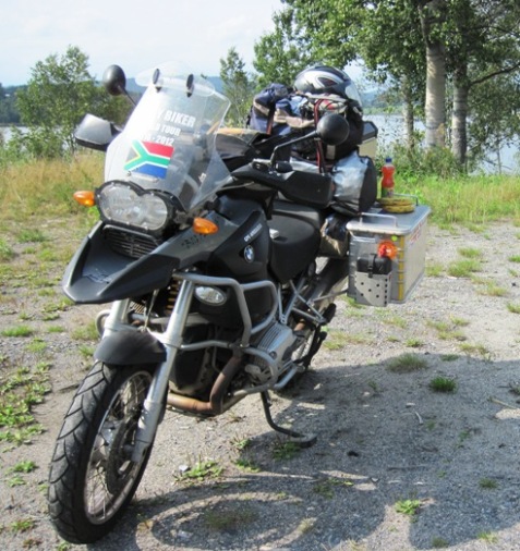 In my rush to get everything loaded before breakfast, I had forgotten to put my clothes bag into my Top-Box…!! Had she not reminded me, I would have ridden off and got to Lulea, 868 km and 10 hours later, and discovered that I had very little to wear for the next few days…!! It was the first time on the entire trip that I done something so stupid…!! I had left the bag on the chair, on the pavement of a busy road, and it had sat there while I was inside the hotel having breakfast… Can’t think of too many countries where the bag would not have grown legs in the same situation…