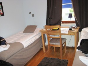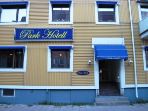 We finally left the bemused inhabitants of Lulea behind us, and down near the waterfront, turned into a quiet street and stopped outside the Park Hotell… (Yes…double “L”…) The manager lived around the corner, and after buzzing him, he arrived a few minutes later, got me settled into my room and showed me where to park the bike…