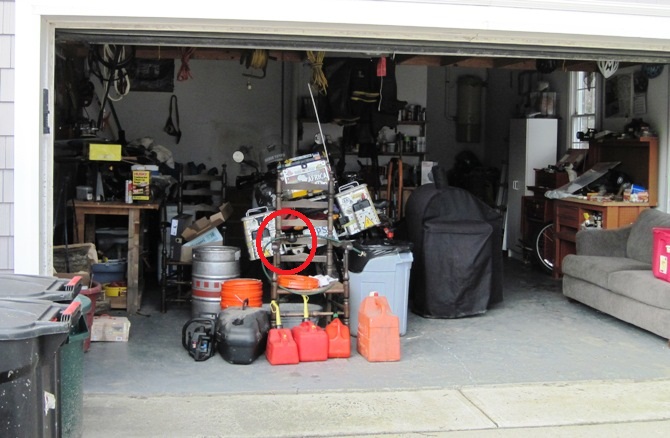 The red ring shows the height of the exhaust, which must have been below the water level in the garage when the lower levels of Jack’s house were flooded… I could only imagine what must have gone through their minds as they watched the waters rise around their home…!!