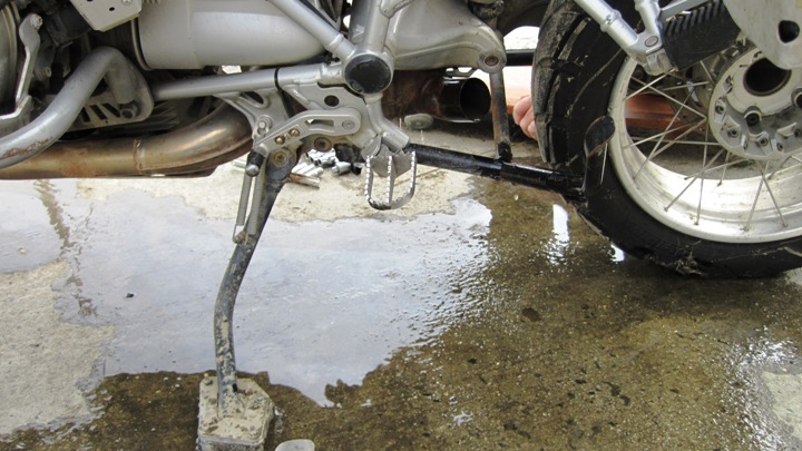 A large puddle of water lies below the bike… Confirmation that the Big Fella had “been drinking” during the storm…!!