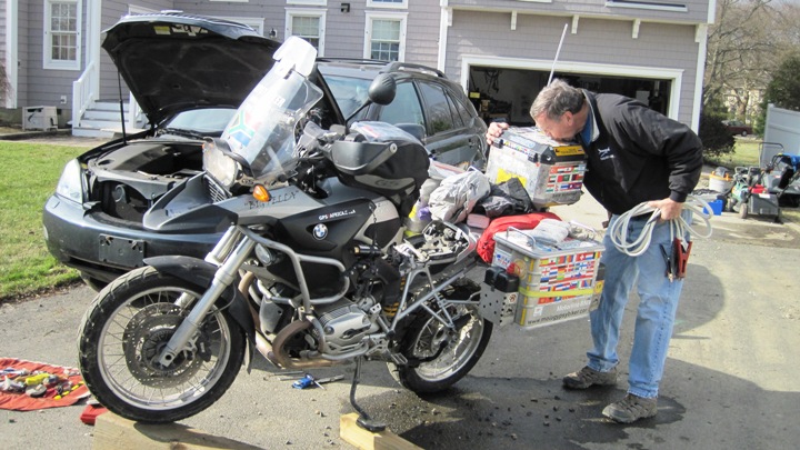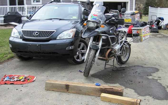 We wheeled the Big Fella out of the garage and hooked the battery up to Ken’s car to jump-start the bike…