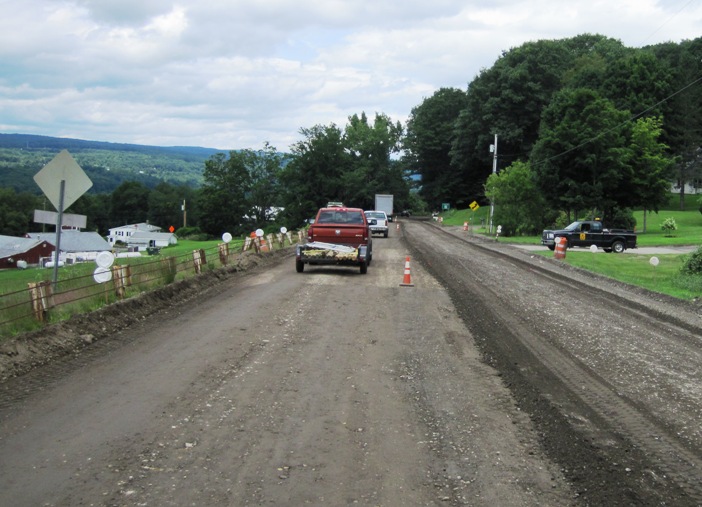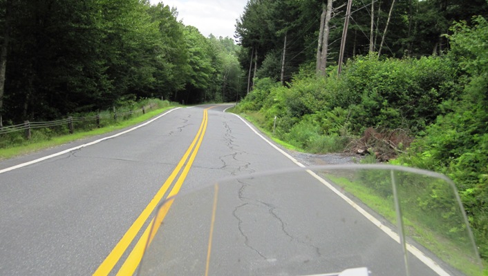 Close to the Vermont border, the roads had been ripped up for resurfacing, and w endured long delays and off road riding for a few miles…