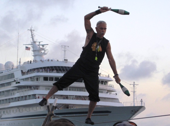 After a few hours on the beach, we headed down to Mallory Square near the harbour to watch the street performers who congregated there every afternoon…