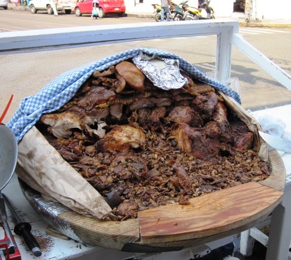 After breakfast, Mauricio and I strolled about to look at all the locally manufactured items on sale… The town seems to specialise in leather and wooden products, and large wooden carvings can be found in almost every doorway… They are mostly of old men and women, and I was told that on Sundays, the elderly congregate in the local square and dance in the open air…