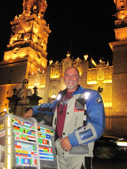I arrived in Morelia at lunchtime, and made my way to the cathedral as directed by Martin of the Venados Riders… I was supposed to meet members of the Manosos Riders there…
