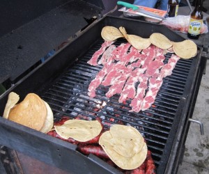 Meat went onto the grill in relays, and as more people arrived, Salvador had his work cut out for him…!!
