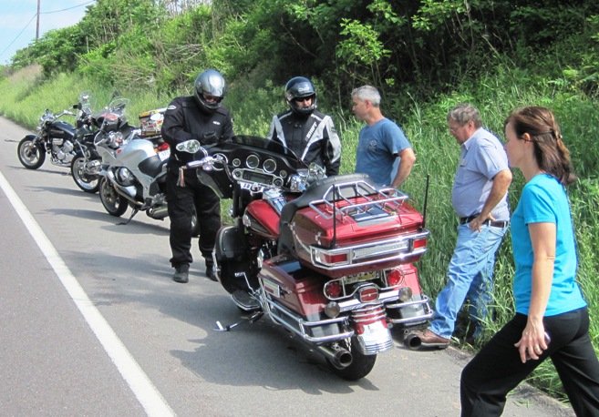 Later that evening, Doug swapped his Norge for his other Moto Guzzi, a Le Mans, and Kevin changed his Honda for his trusty KLR 650, and together with Kevin’s wife Sandy, and Theresa on her BMW 800 ST, we rode over the hills behind Port Carbon to have an ice cream at a nearby dairy that served the best ice cream in the district.