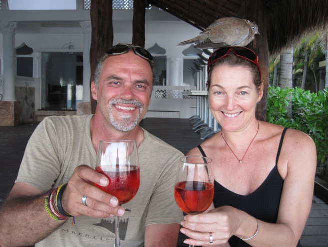 We enjoyed our last sun-downers together, on the beach outside our hotel... (Complete with feathered friend....!!)