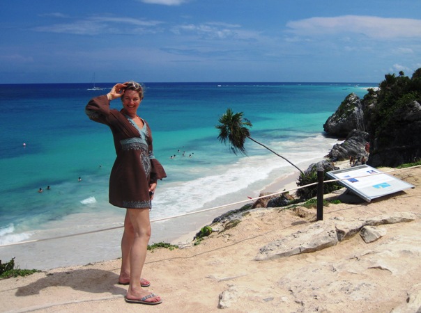 There were walks on the sugar-white beaches of the Riviera Maya; swims in the stunning blue of the Caribbean; a fast outride in the pouring rain aboard the ever eager Big Fella; snorkelling in a few of the hundreds of “canotes” or sink holes that litter the Yucatan; a trip to the ruins in Tulum, about 70 km back down the coast I had ridden up last week; lots of shopping excursions; and of course, there was yoga…!!