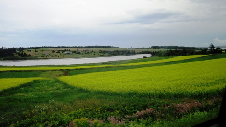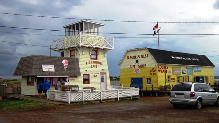 We headed north out of Charlottetown on what is known as the Blue Heron Coastal Drive, and followed the shoreline through the lush green countryside, all the way west to North Rustico Harbour, where we sat down to lunch, just moments before a rain-squall passed over us.