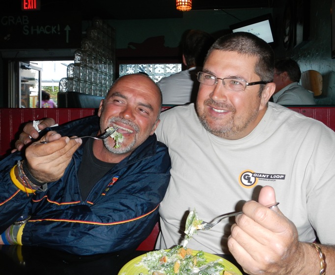 Mark and I share a salad, which got us a ribbing from Trevor…!! Marks new haircut, has not gone down well at home, I understand…!! Using my battery operated shaver, it took almost three days and multiple re-charging to finally get it done…!!