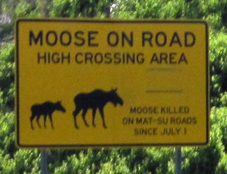 The road down to Denali wound its way through a thickly forested range of low hills, and warnings about Moose crossings were posted every few kilometres… Needless to say, not one of these animals put in an appearance during my ride…!!