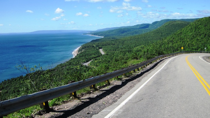 There was a short section of tight corners and sweeping bends just before Ingonish and beyond the town, on the way to Neils Harbour and Cape North, it got really twisty and steep. I passed a lot of riders on their Harleys, who were clearly there for the scenery only, and not prepared to do any leaning on their bikes whatsoever…