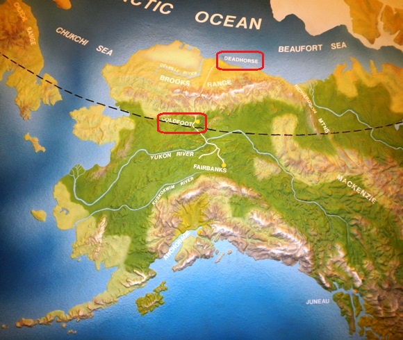 This maps shows our route from Fairbanks to Deadhorse on the Arctic Ocean, and back again… There is only one road in and out of Prudhoe Bay…the infamous Dalton Highway…