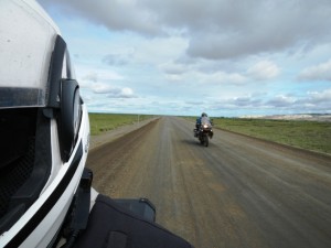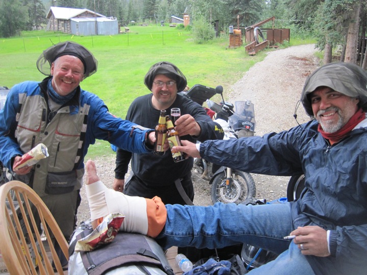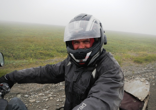 Riding with an injured rider on a battered bike in the middle of the Alaskan wilderness; rain and a cold wind swirling about us; mist that had closed in and reduced visibility down to just a few yards in places; huge juggernauts that thundered up behind us and then overtook , spraying us with mud and stones…