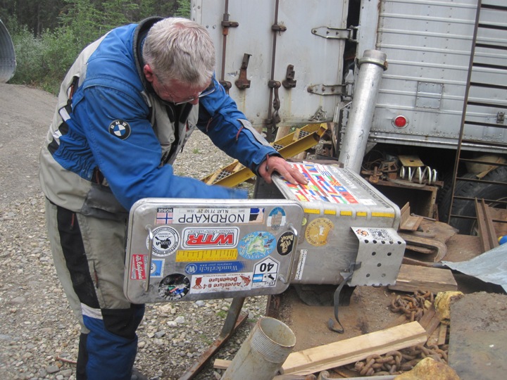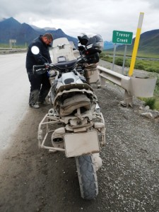 OMG, I can’t believe what has happened to you after all this time and around the world…..on the return leg of your journey. That Dalton Highway is an accident waiting to happen, not just for bikers but anything else that rides it. You have really been blessed Ronnie, that your injuries are what they are. Big Fella can be fixed and look as good as new but the most important thing is that you are okay. We are so grateful to your fantastic companions, Trevor, Chenty, and Mark, not forgetting the good Samaritans Damon and Rachel for loading your gear.