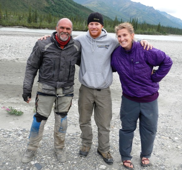 Damon and Rachel had waited for us at the Wiseman turnoff and we rode down onto the banks of the shallow river where they were parked, and chatted for a while… They offered to ride the 3 miles to Wiseman and deliver my gear directly to the door of our little cabin…