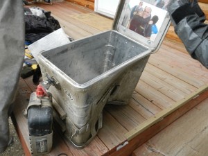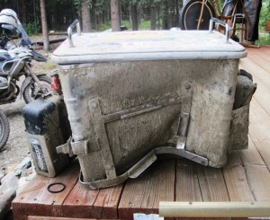Chenty then bustled about carrying all the contents of the pannier into the cabin, and then set about cleaning the mud off all my gear…