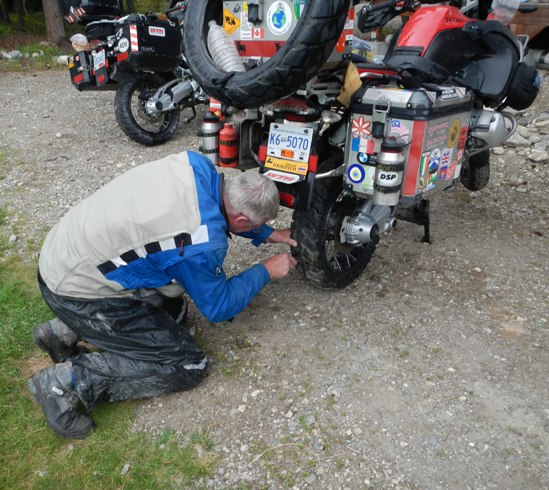 He had ridden the last few hundred kilometres on a fast deflating rear tyre, caused by a nail he had probably picked up in Prudhoe Bay…!!