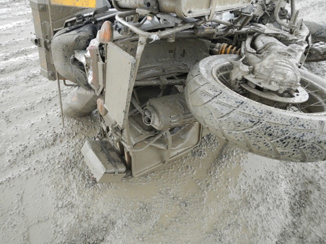 Problem was, my forward momentum at that stage was in the region of 65 km/h, and after getting straightened up, I felt it was best to stay at that speed and “tough it” through the rest of the stretch that was under mud…