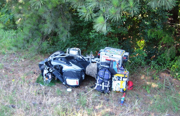 I tore my helmet off and took a good look at him foe the first time… I saw the anguish written clearly on his face and in his eyes, and I immediately felt sorry for him. He seemed to be in a greater state of shock than I was. In fact, I can’t say that I was ever in shock… My hands weren’t shaking; I was speaking and thinking clearly; and my brain was already asking questions like, “Is the Big Fella OK?” and, “Will I still be able to ride ?”…