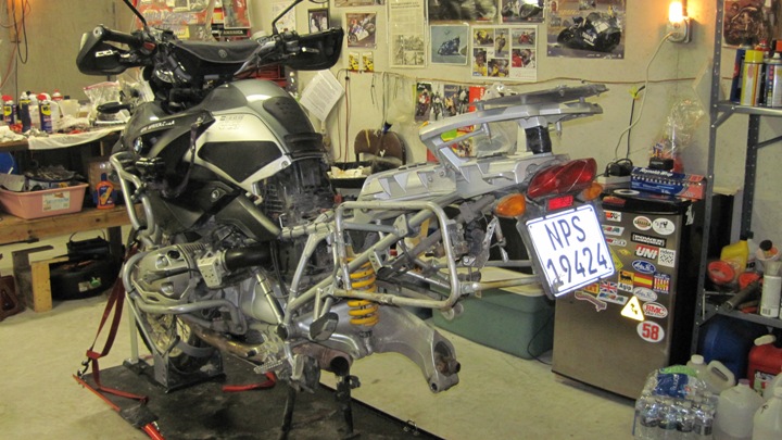 I stood close to my bike for a few minutes, saying a silent goodbye and promising to be back in just a few months to resume our adventures. He seemed a little disgruntled to be left in a near naked state, his rear end dismantled…