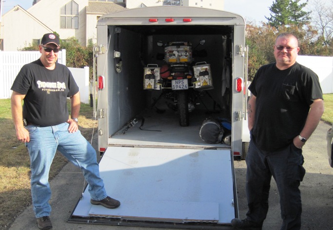 My good friends Doug McIllwain and Kevin duly arrived in Freehold to collect the me, and then drove to Monmouth Beach to collect the Big Fella… Kevin’s trailer was by far the fanciest that the Big Fella had ever been in…!!