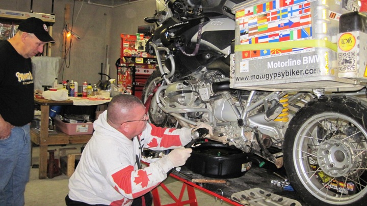 Hermy’s BMW … Darryl and the boys were more than happy to help a well traveled biker with his problems…