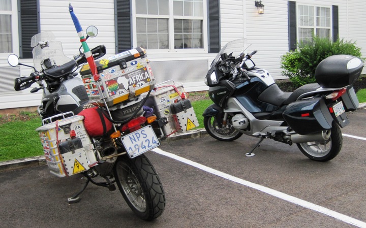 Turns out they were from Ireland and had rented the bikes complete with luggage bags, and had not yet figured out how to tie them on properly… I walked over to them and spent a few minutes helping them get sorted. Seeing the Big Fella loaded as he was, made them step back and allow me to explain how things should be secured…