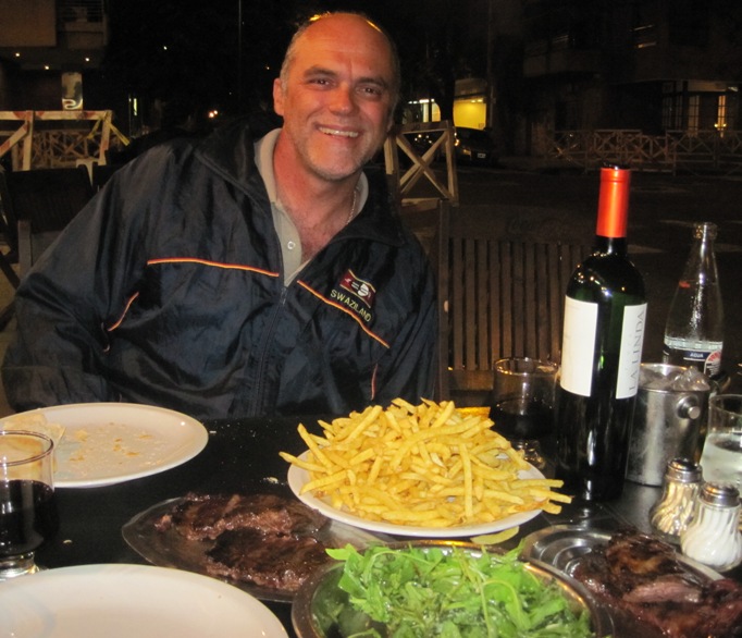 We ate our way through two plates of thin steaks, a large salad and a mountain of fries, all washed down with a bottle of red wine, and were the last diners to leave at about 2.00 am…!! In fact, the waiters began pouring water on the floor around us and sweeping it into the gutter while we ate…