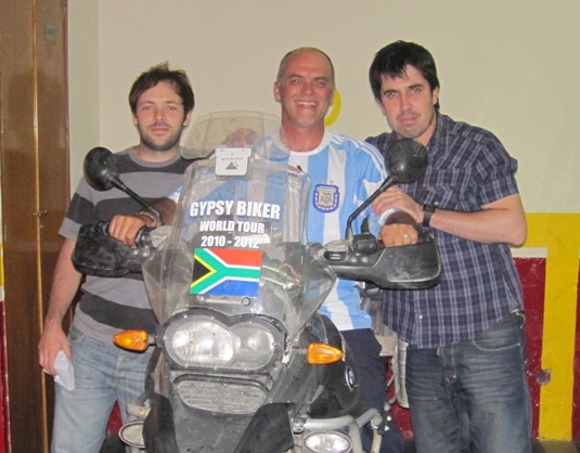 An hour later, the other members of Tres Machos, Pablo and Agustine arrived to greet and bid me a final farewell… They had ridden into the city to collect their motorcycles that had been trucked up from Ushuaia… It had taken their bikes five weeks to get to B.A., and I teased them by reminding them that it had taken me just three and a half days…!!