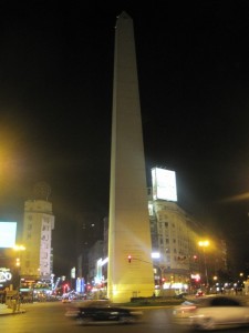 Last night, Ezequiel invited me to join him at the Tango Porteno, where he worked as a sound technician…I walked the eight or ten blocks down to the Avenida 9 Julio, to where the massive Obelisco stood floodlit against the dark sky and then turned towards the Theatre where the Tango show was playing…