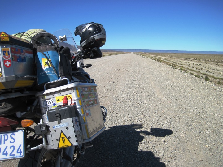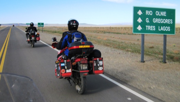 “Ronnie, Ronnie…!!” Pablo said, coming over to where I was sitting on the bike… “We cannot make it to Calafate…!! Eet ees too far, Che, and there is no petrol at Tres Lagos… We need to go to Governador Gregores to get petrol, and then we see…!! Hokay…??”