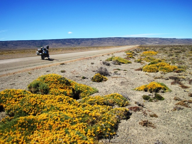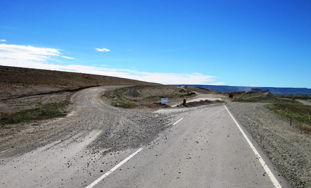 We came to a longish stretch of tar, where the Ruta 40 ran up against the Rio Chico, and took a sharp left… The tar ran straight and true, for about 30 kms, then ended as abruptly as it had begun…