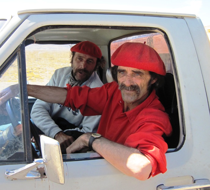 These Gauchos, two brothers, pulled over to look at the bikes and had a rapid fire conversation with the guys... Not sure what they spoke about, but there was much laughing and joking...!! They had a huge hound in the back of the pickup, who eyed me hungrily as I walked up to pat him... The look in his eye stopped me dead in my tracks...!!