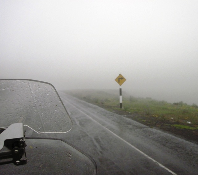 Although it had been dry in Cuzco, up in the first range of mountains, it was raining…!! I decided to ride through it and not stop to put on my rain gear, hoping that it would soon pass over…. And it did…!!