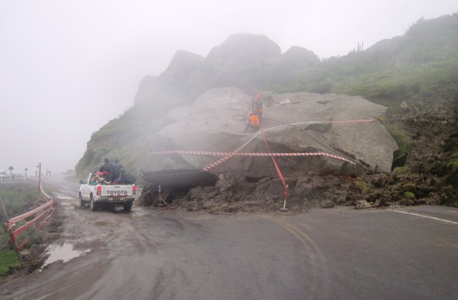 In some places, the road had to be diverted to get around the larger rockfalls…