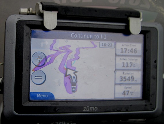 I poked a gloved finger at her “screen minimize” button a few times, and saw that we had an 80 km stretch of the twistiest roads imaginable, lying in wait for us…!!