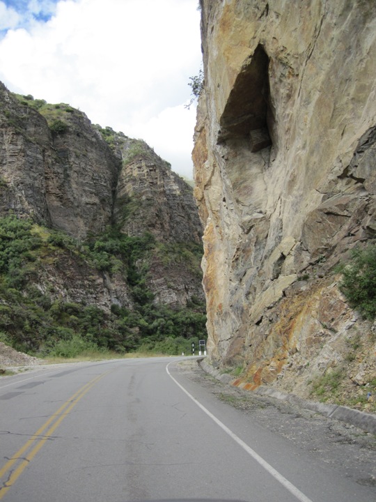 Water seemed to pour from every crevice on every hillside, adding to the already fast flowing Rio Ortesim… This river cuts through the mountains, and the I-26 follows the path that the Ortesim has taken centuries to cut…