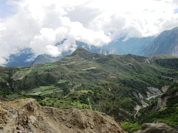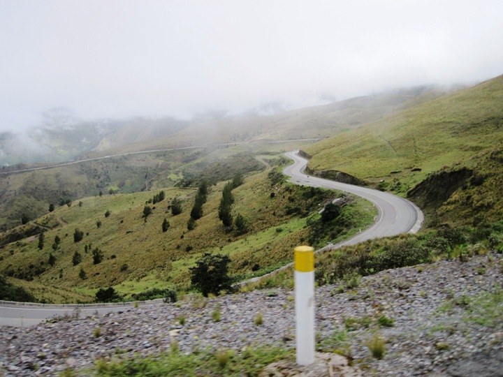 I was able to look back on yet another steep mountain pass that we had just climbed… Up ahead I could see a thick bank of clouds that covered the higher elevations we still had to climb to…