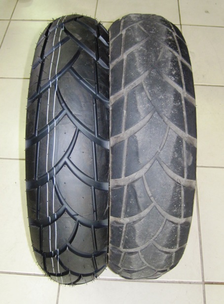 Roger decided to buy a new set as well, even though his rear tyre could still have carried him for a few thousand kilometres more…