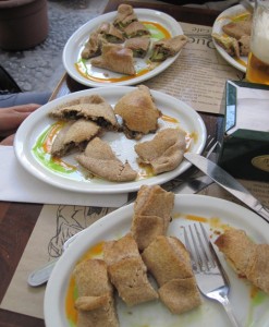 We ordered a variety of empenadas, a local pie-like dish, but with a lot less filling in them… The two huge salads that we had also ordered more than made up for the “heaviness” created by the doughy starter…!!