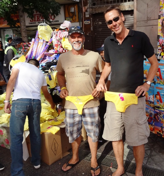 We discovered that here in Chile, it is believed that if you wear yellow underwear on New Years Eve, and get to make love, you will have good luck in the coming year…!!