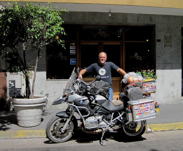 I found my way to the Hotel Rey, and parked in their secure parking area next to the lobby… A mechanised gate dropped closed behind me as I rode to the back of the parking area and saw Roberto’s Dakar F650 parked there… Alongside it was a much traveled R 1150 GS, that belonged to a Polish American friend of his whom he had met in Peru or Bolivia, a few months before…