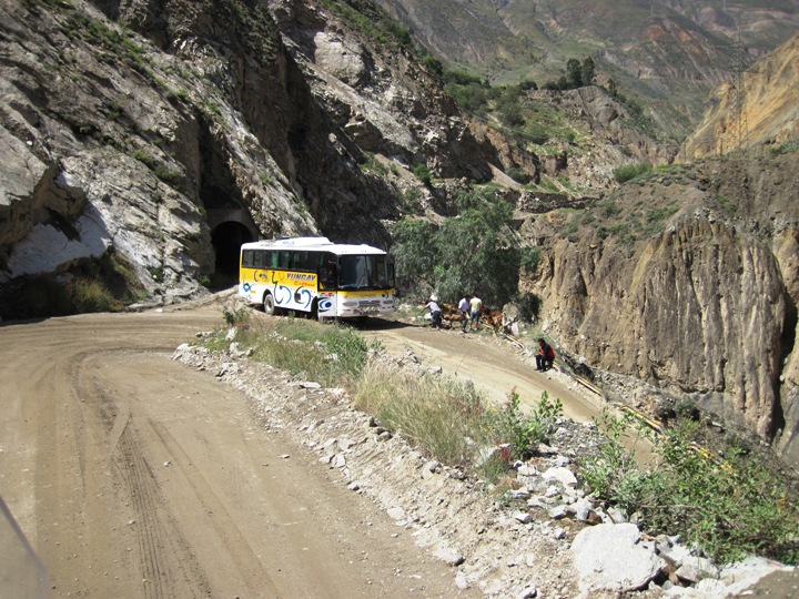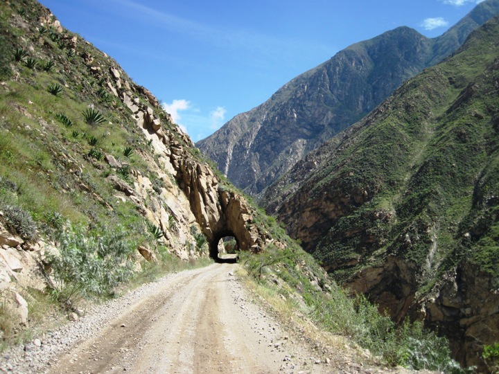 There are 35 single lane tunnels on this road that connects the Pacific coast to the valley between the Cordillera Negra and Cordillera Blanca… The road generally follows the Santa River, which has carved a valley down to the coast…